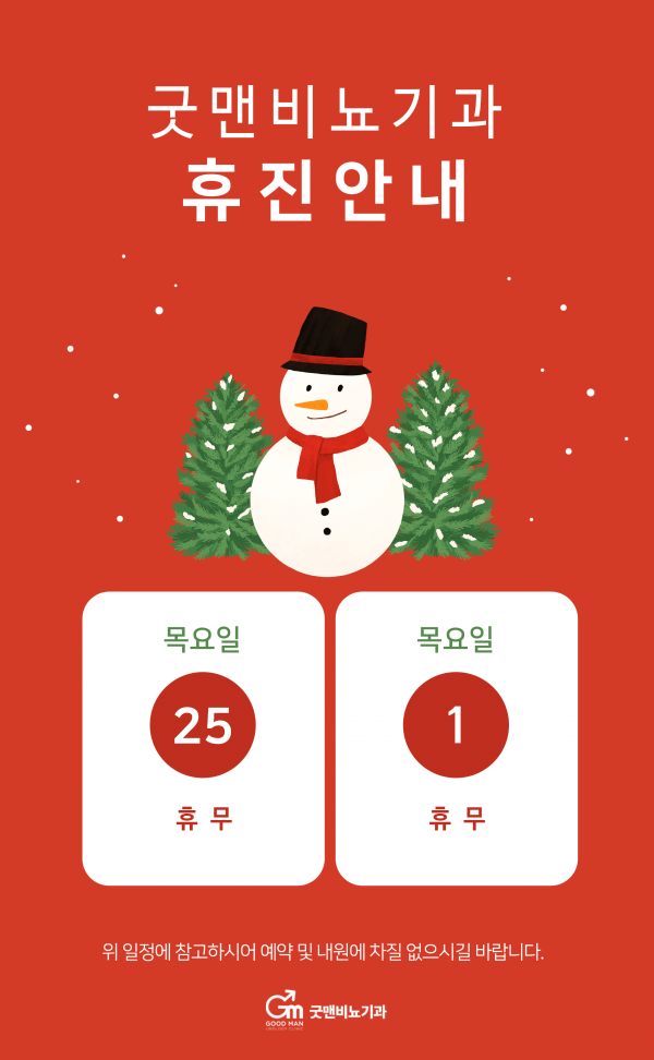 병원은 귀하의 정보를 수시로 저장하고 찾아내는 '쿠키(cookie)'를 운용합니다. 쿠키란 병원의 웹사이트를 운영하는데 이용되는 서버가 귀하의 브라우저에 보내는 아주 작은 텍스트 파일로서 귀하의 컴퓨터 하드디스크에 저장됩니다. 병원은 다음과 같은 목적을 위해 쿠키를 사용합니다. 귀하는 쿠키 설치에 대한 선택권을 가지고 있습니다. 따라서, 귀하는 웹 브라우저에서 옵션을 설정함으로써 모든 쿠키를 허용하거나, 쿠키가 저장될 때마다 확인을 거치거나, 아니면 모든 쿠키의 저장을 거부할 수도 있습니다. 회원님께서 쿠키 설치를 거부하셨을 경우 일부 서비스 제공에 어려움이 있습니다.
